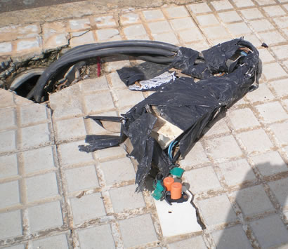 Diese gefährliche und unzulässige Kabelverbindung in einem Lichtmasten bei offenem Klemmkasten findet man heute in unserem Land! |