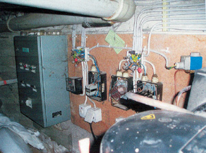 Die Verteilerdosen sind im Klemmbereich überfüllt, die Steuerkästen offen. Hier war eine Totalabschalttung der Versorgung notwendig! |